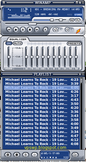 Berikut ini adalah tampilan utama Audacious yang sudah dipasang skin WInamp. Mirip bukan?